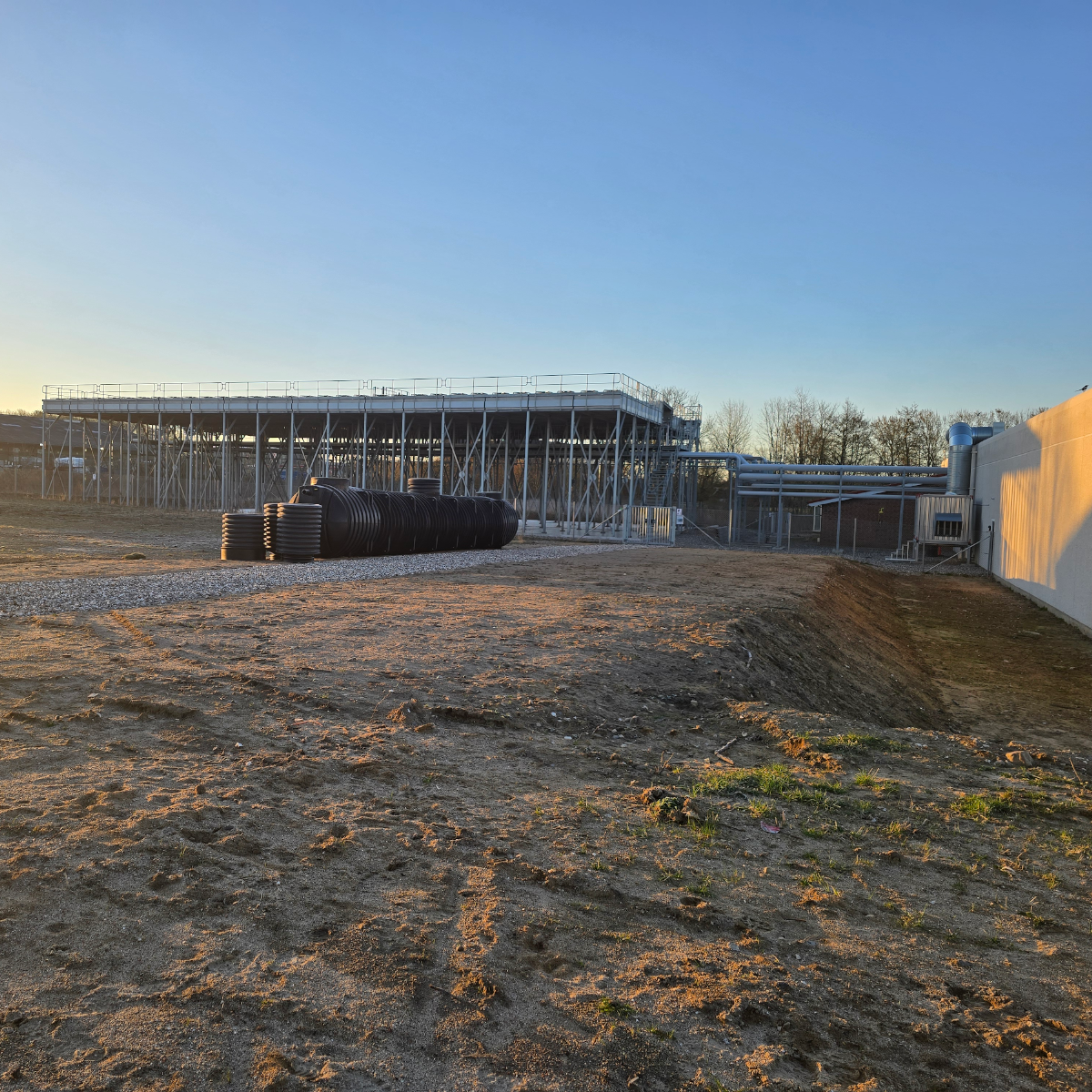 Løsningen omfatter en 23 m³ WaterCare-tank, som er nedgravet udenfor Skanderborg-Hørning Fjernvarmes hal. Tanken er smart designet med to separate kamre: