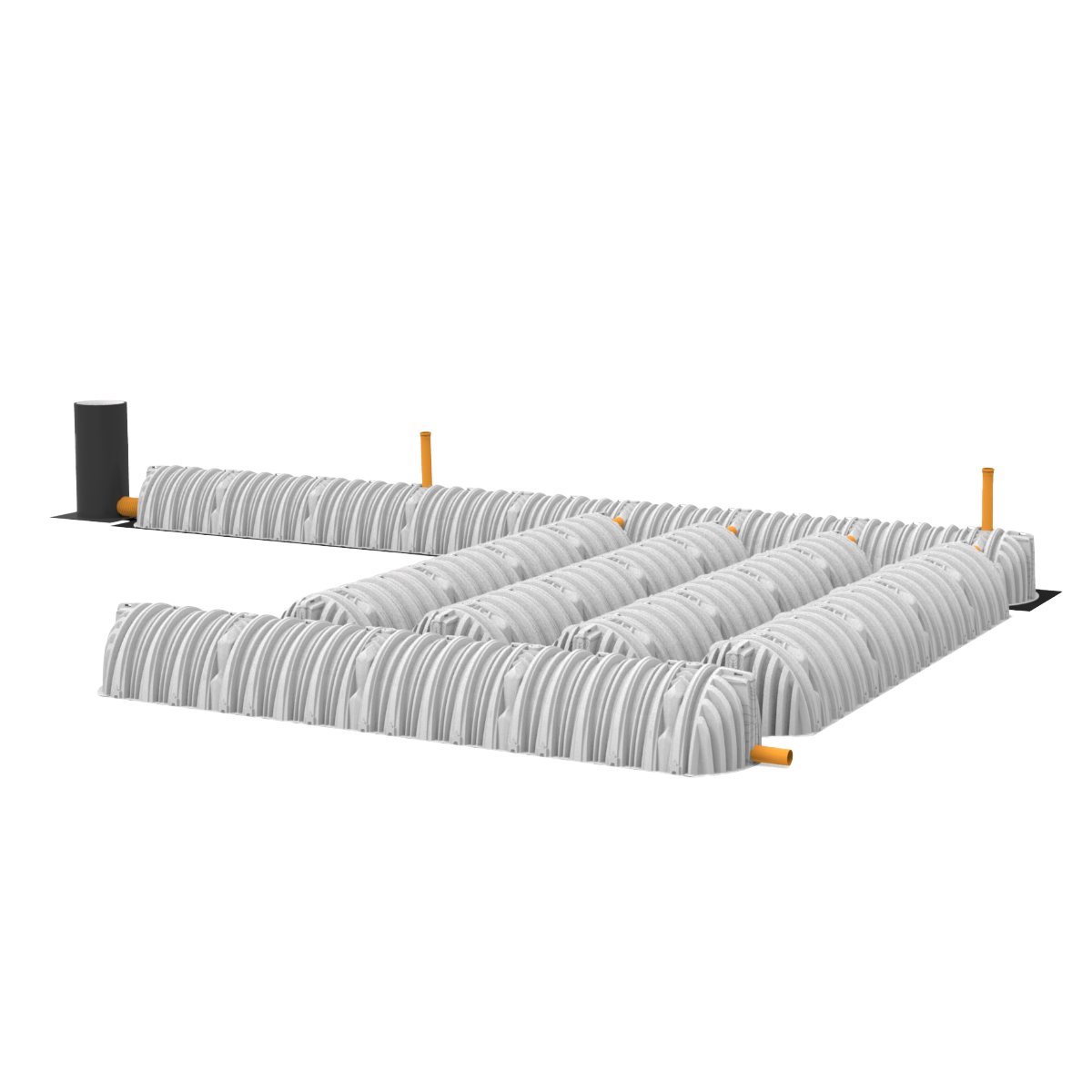 WaterCare Faskinetunneler til nedsivning er et fleksibelt modulsystem med høj kapacitet, der nemt kan tilpasses de tilgængelige arealer. Deres styrke til at modstå tung trafik gør det muligt at placere dem under en parkeringsplads, hvilket sikrer optimal udnyttelse af grunden.